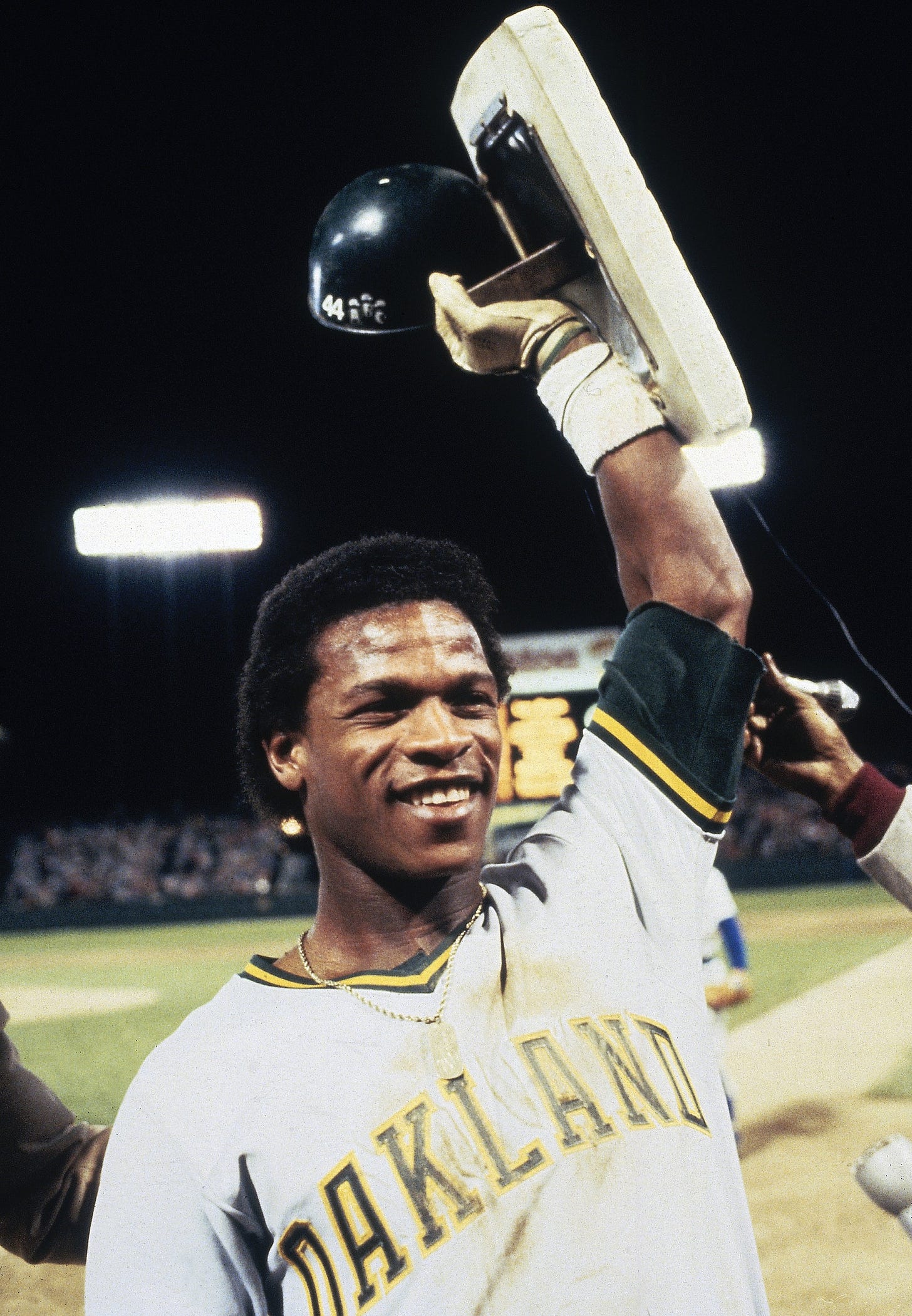 Under his full name, Rickey Nelson Henley Henderson—he was named for 1950s rock icon Ricky Nelson (who spelled his name without the E)—is his nickname, in quotations: “Man of Steal.”
