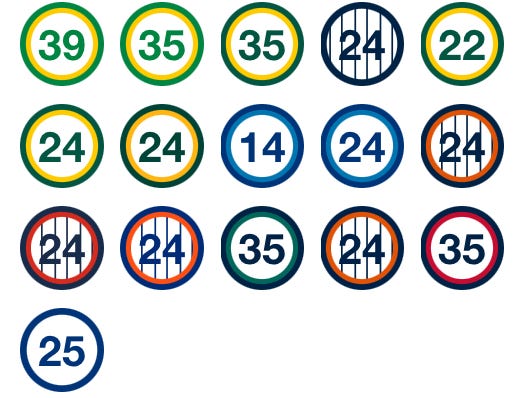 Those are all the uniform numbers Rickey Henderson wore for his nine different major league teams. His baseball life was more than a baseball journey… it was a mathematical journey. He wore No. 35 during his early glory days in Oakland, back when he stole an unreal 130 bases in 1982.