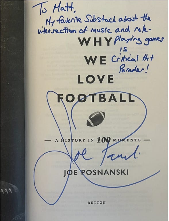 Brilliant reader Matt had me sign his copy of WHY WE LOVE FOOTBALL in a very fun way: