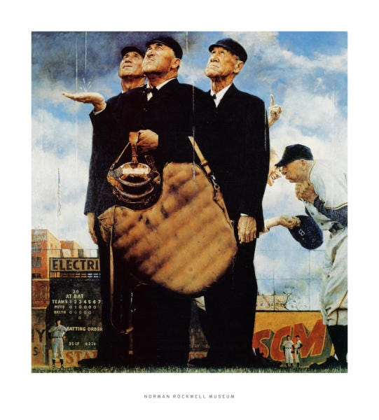 *Meyer is also the guy in the background of perhaps the most famous baseball painting of them all, Norman Rockwell’s “Tough Call.”