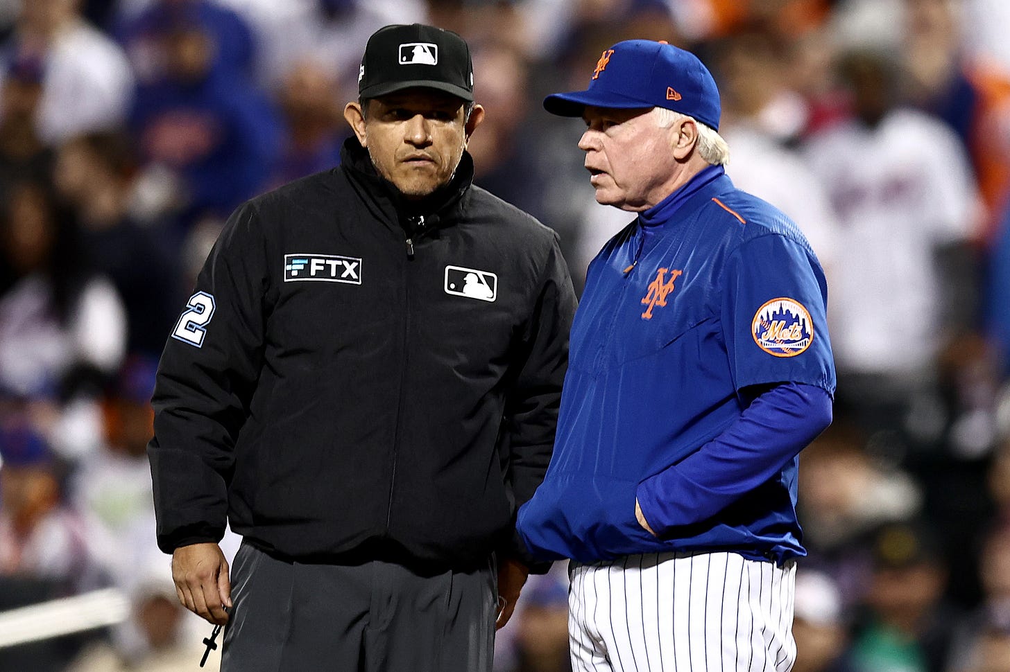This is how it ends for the Mets, relegated to the wild-card round because of a technicality*, playing at home in front of a less-than-sellout crowd, having their offense strangled by the San Diego Padres’ third-best pitcher and with their long-suffering manager, Buck Showalter, reduced to desperate pleas of, “Hey, umps, help us, that guys might have some sticky stuff on his ear,” or words to that effect.
