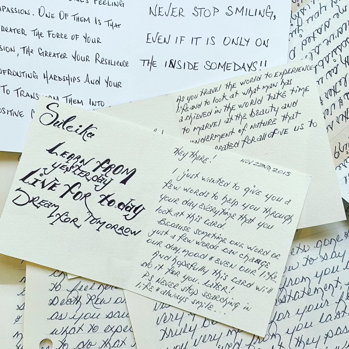 Take a look at this collage of letters Suleika put together. Look at the handwriting. Sometimes just seeing the handwriting can tell its own story.