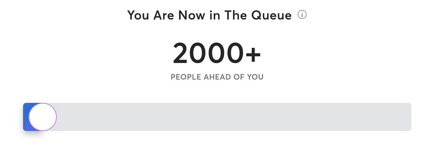 OK. back in business. There was one thing that was bothering me — what did “2000+ PEOPLE AHEAD OF YOU” mean? I mean, that could be 2,001 people or the entire population of India. I was reading on Twitter that there was some way to find out how many people were in the line, but it sounded kind of complicated, plus I wasn’t really sure I wanted to know.