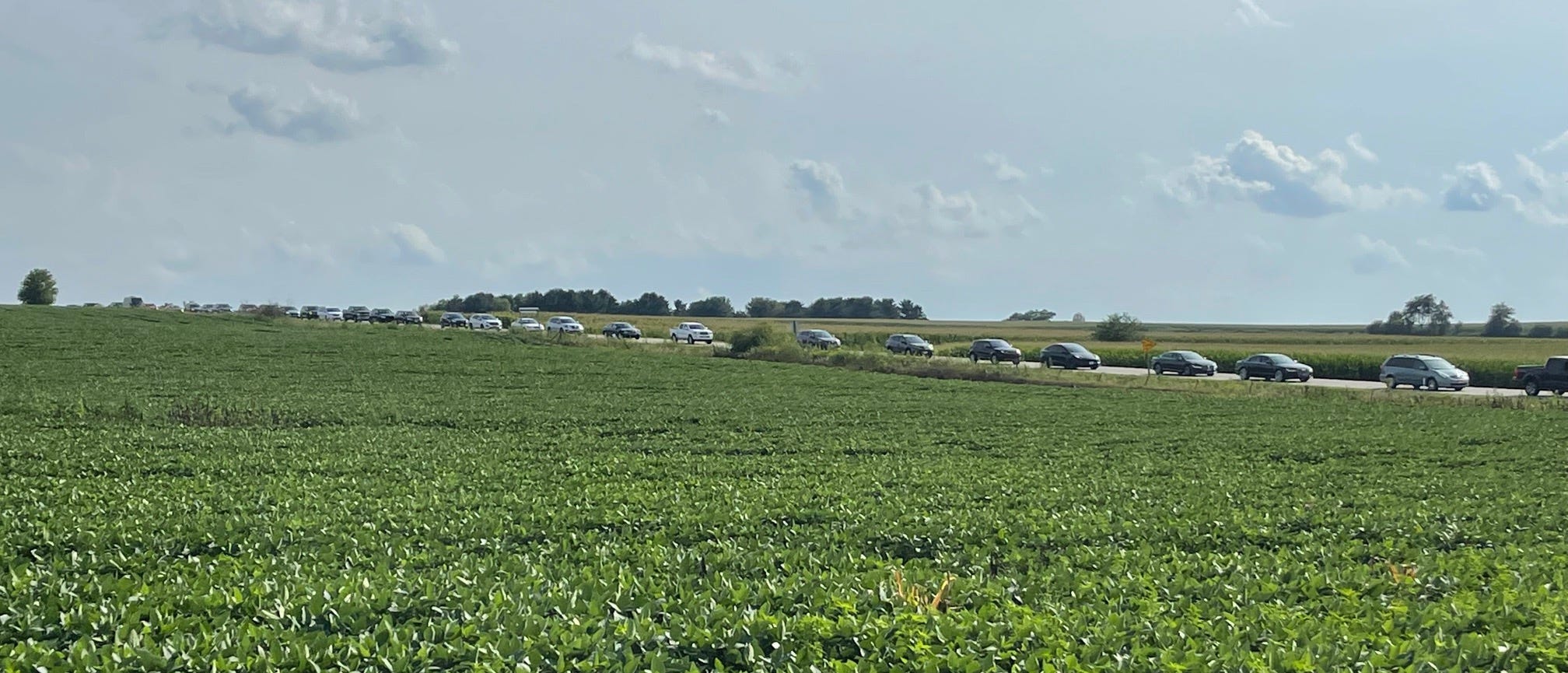 Well, naturally, this is what you would expect from the first major league game in Dyersville, Iowa, right? But now I’m going to tell you what happened to us; we took the wrong exit. We had plugged the Field of Dreams Office into the GPS instead of the field itself, and I guess that’s in a different place. Once we realized the mistake, we punched in the new location, and it directed us down a winding two-lane road for seven miles. We didn’t see a single car during that stretch. We just kept turning and twisting, past cornfields and farmhouses.