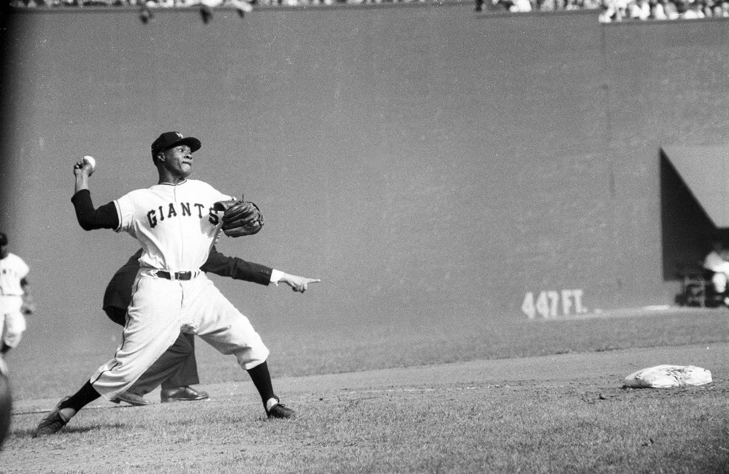 His arm cocked and ready to throw, the ump's finger pointing "fair," the little awning in centerfield letting you know it's The Polo Grounds.