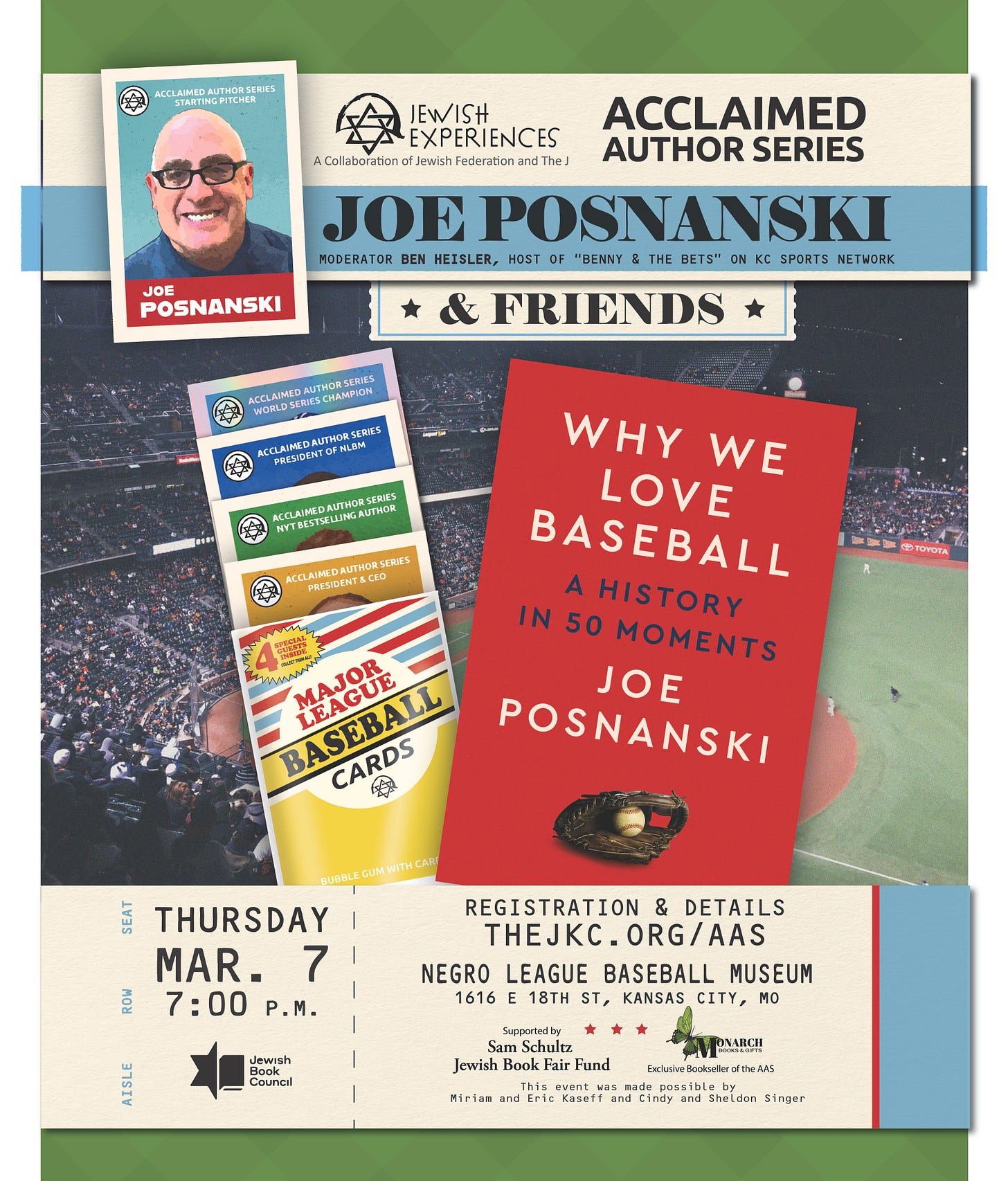 March 7: Yep, I’m back home in Kansas City at the Negro Leagues Baseball Museum for a night that I guess they’re calling “Joe Posnanski & Friends.” Based on the poster, I think we’re supposed to keep my friends “secret” (probably a good strategy) but I will tell you that Bob Kendrick is going to be one of them, and that alone should make this worth the price of admission. Especially because the price of admission is: $0.00. You can register here!