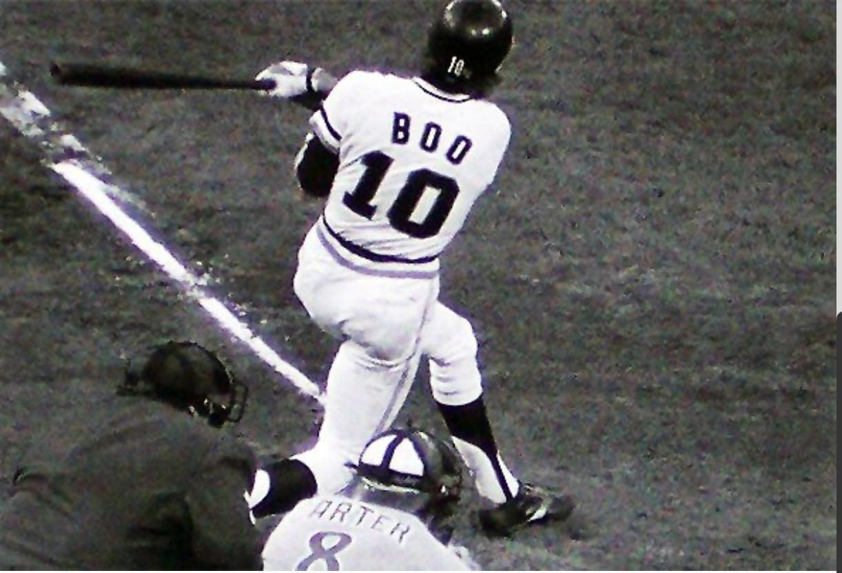 Brilliant Reader Ray: In September of 1975, when I was 10, I went to the ‘Stick to watch my beloved Giants play. Johnnie LeMaster debuted against Don Sutton and blooped a ball into centerfield, where it skipped past the outfielder and bounded back to the wall. The speedy rookie raced all the way home with an inside-the-park home run. LeMaster was a hero! But the tide would turn. Though he could pick it at short and had a cannon, LeMaster could not hit a lick. Soon, frustrated fans would dub him Johnnie “Disaster” and boo him mercilessly. One day, LeMaster appeared on the field in a jersey with the name “Boo” on the back. And, again, he was booed.