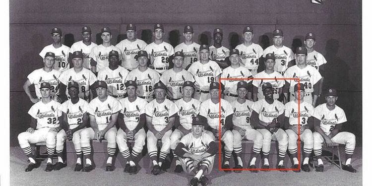 See, seconds before the photo was taken, Uecker had whispered to Gibson, "We should hold hands." Gibson happily did, and they held hands, and they smiled big, and this was 1964, and the Cardinals about lost their minds. They threatened to fine Uecker (but, tellingly, not Gibson), but in the end just had the photo retaken, this time very purposely putting Uecker and Gibson in separate rows.