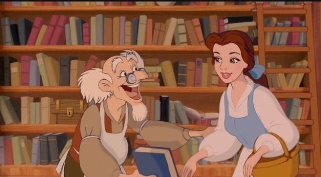 I would go to that library all the time, rush right to the tiny sports section, and see if they had added any new sports books. They rarely did. I think that’s one of the reasons my favorite Disney Princess movie has always been “Beauty and the Beast” — there’s a scene at the beginning where Belle goes to what I can only assume is the only bookshop in town.
