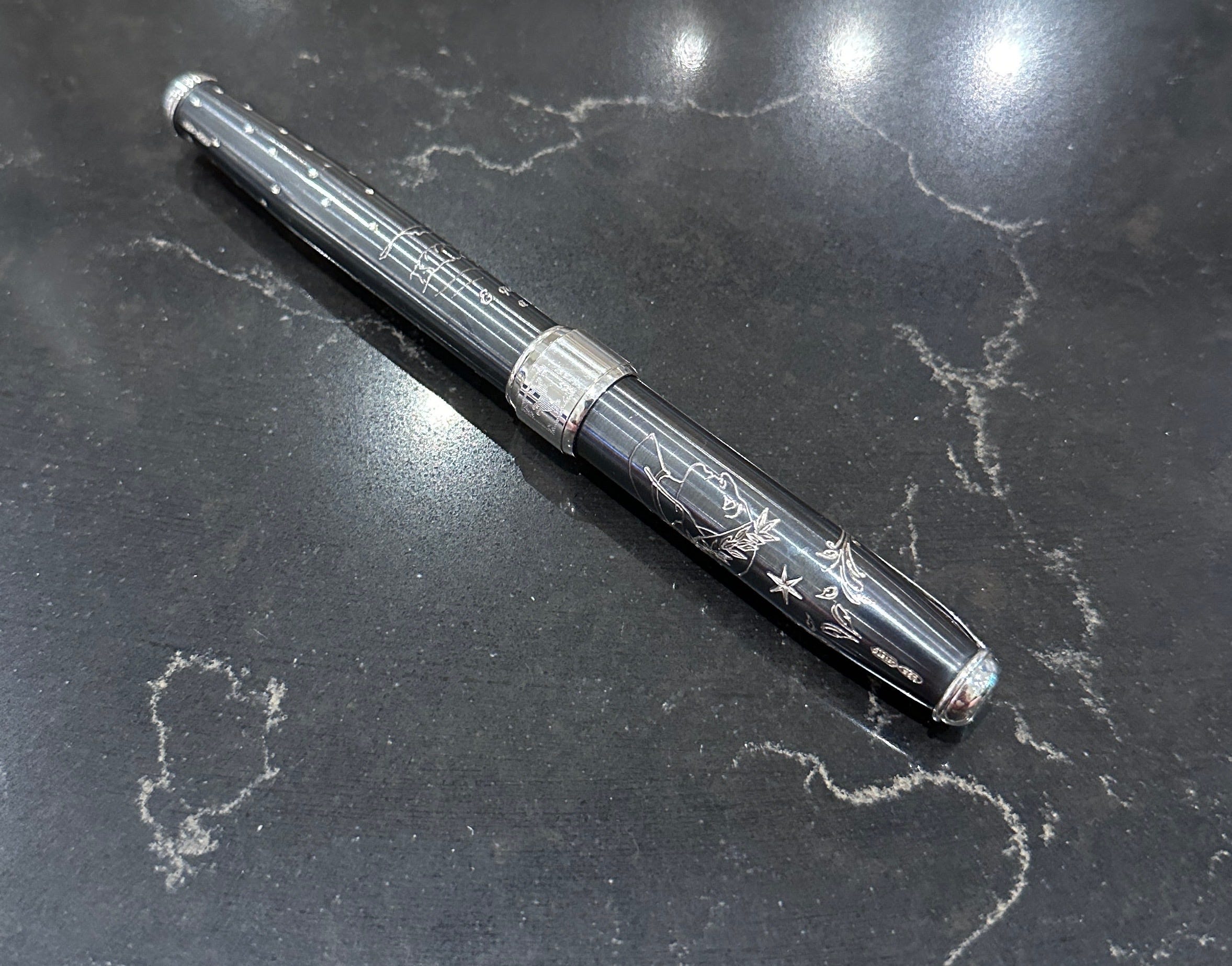 That is a limited edition Grifos Nero Miso “See Stars Again” pen. I don’t think the photo does justice to how beautiful it is AND it has the last line for Dante’s Divine Comedy inscribed on it: E quindi uscimmo a riveder le stelle.