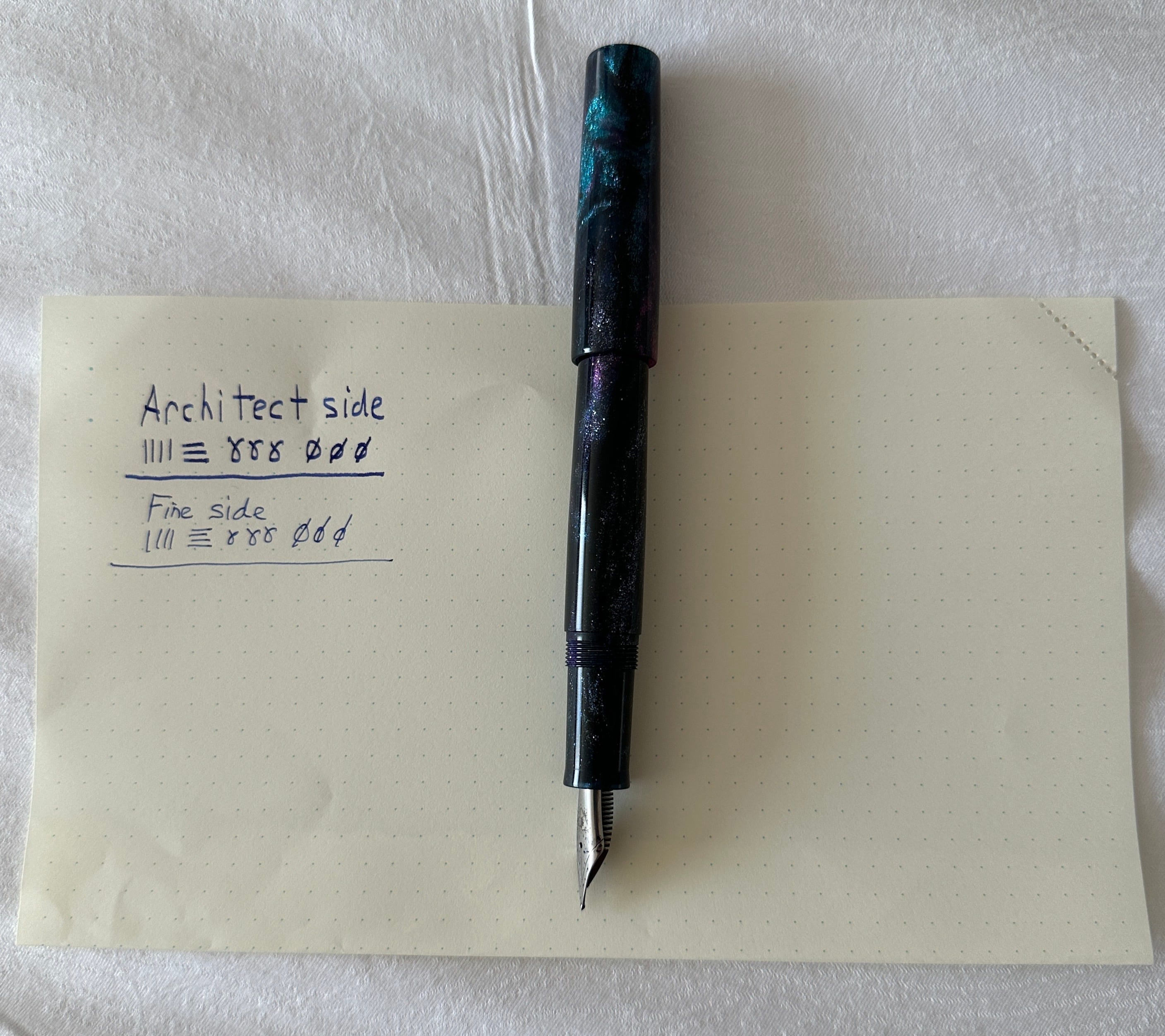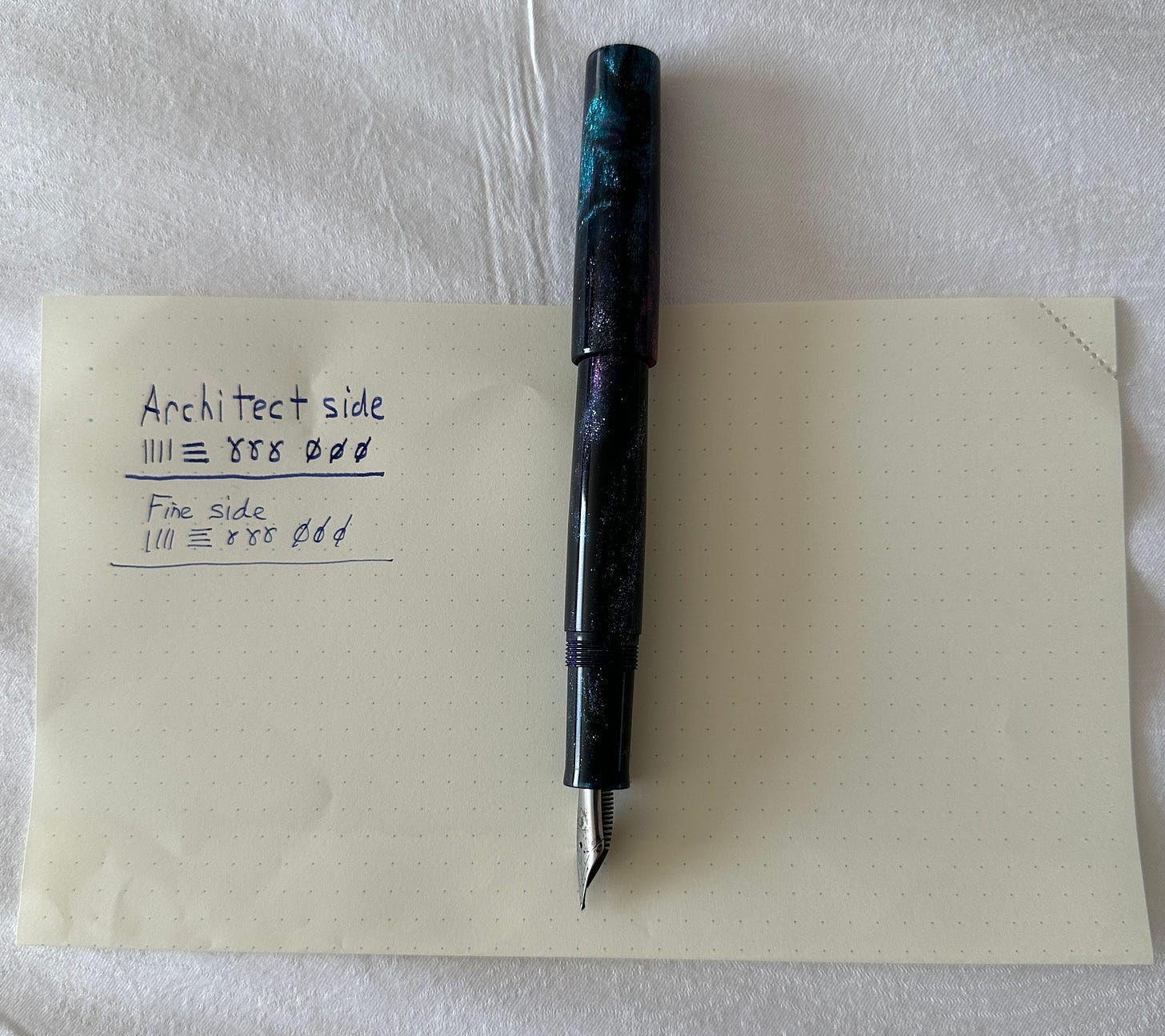 Oh, I got back my Jonathan Brooks pen with the Mark Bacas ground nib. I’m not sure you can tell much from the writing sample but …