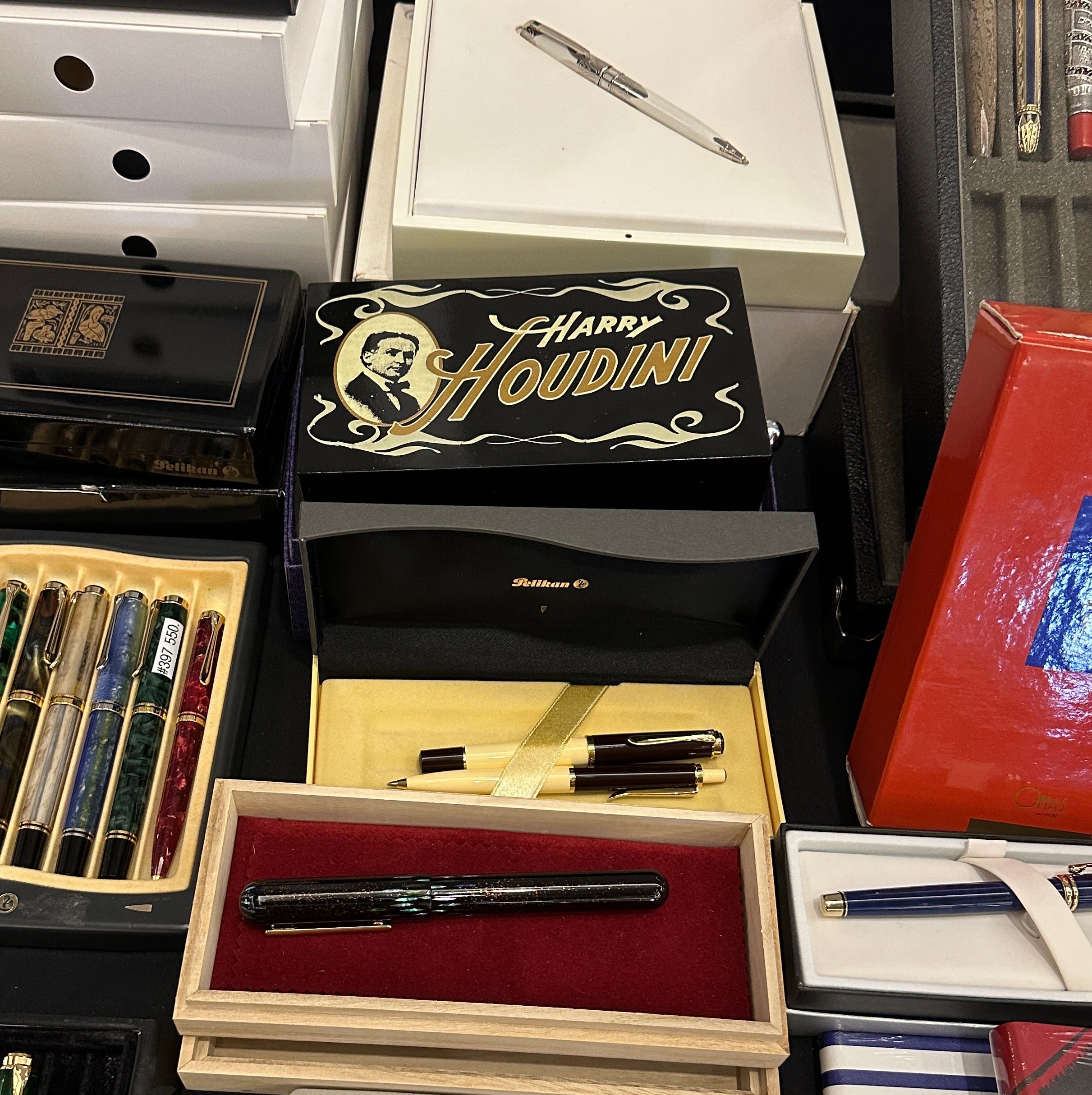 That’s right, it’s a limited edition Harry Houdini fountain pen with a magic box. Open the box and there is the pen. Close it and open it again and the box is empty. It’s awesome.