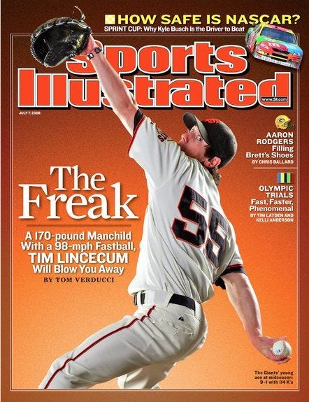 No. 3: Tim Lincecum, a 5-foot-11 whirlwind of a pitcher out of the University of Washington. Lincecum was widely viewed as a freak — or perhaps, more correctly, THE FREAK: