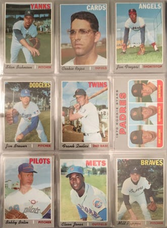 But fundamentally the cards don't feel the same. There's something missing from the new cards. But what is it? There's something just a little bit cornier, just a little bit more careless, just a little bit less polished about the 1970 cards. They're inferior in ways that would matter to, say, an art director or a photographer or a baseball fan too young to remember.