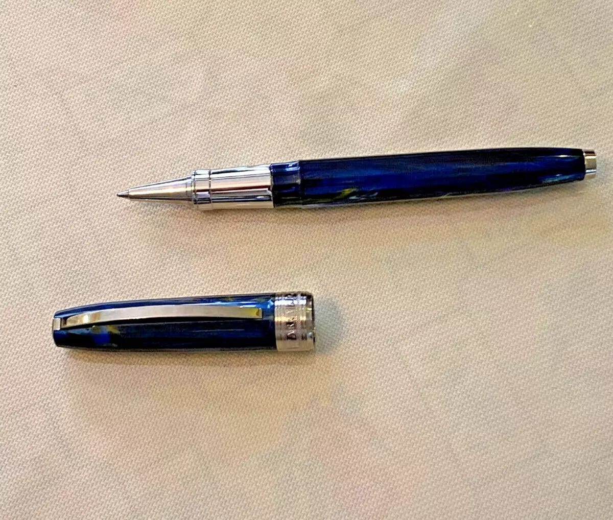 Fountain pens? How, right? So this is how it happened… I was cleaning out my desk drawer, and I found two really nice pens that I might have gotten as gifts somewhere along the way. One is a Visconti Starry Night Rollerball; that’s like a 200-plus dollar pen that I just had in the back of a drawer, which tells you how much I thought about pens before all this. Anyway, it’s beautiful, and it writes really well, and finding it was like having it gifted to me all over again.