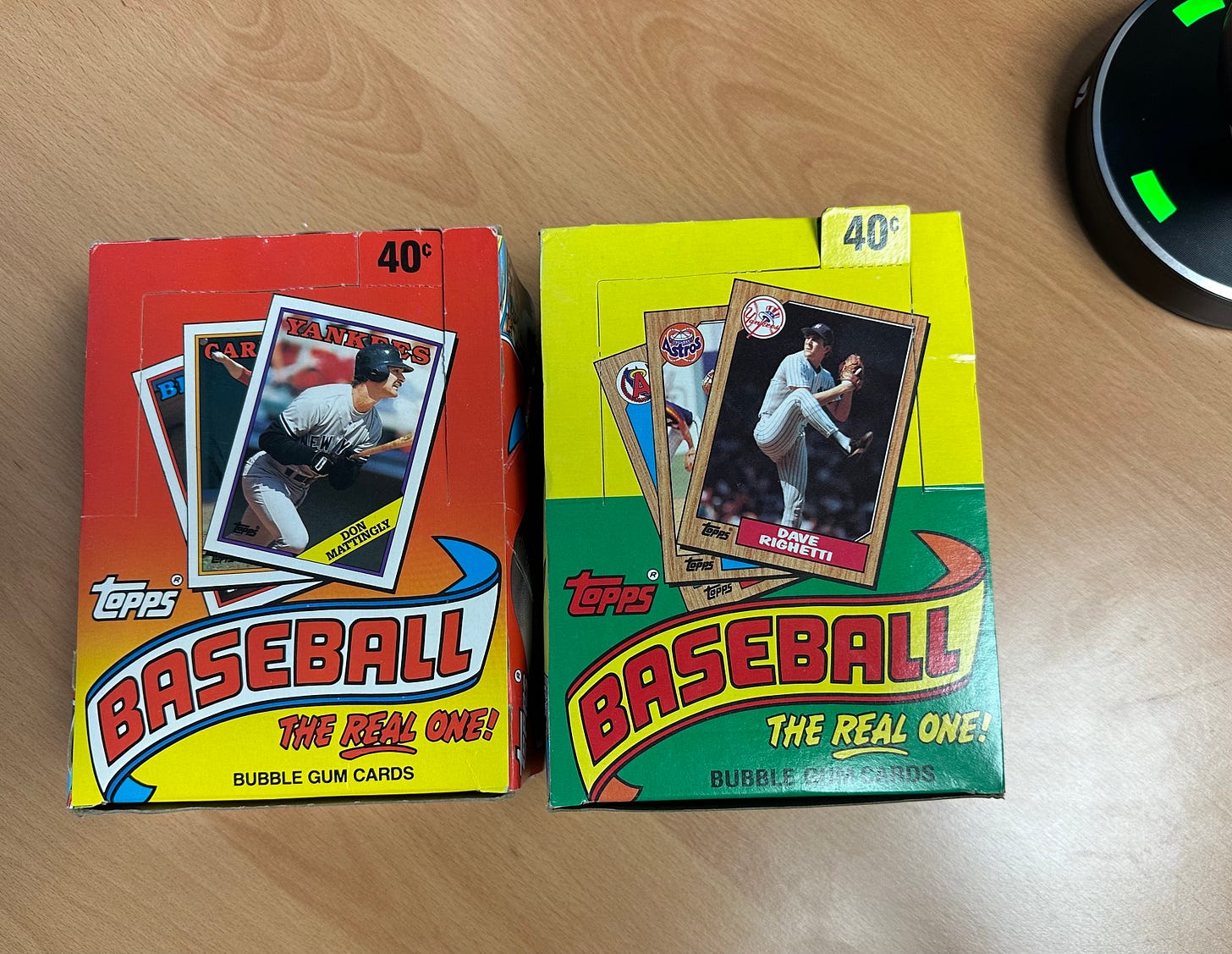 As it turns out — it has become one of the most listened-to PosCasts ever. Shocked the heck out of me. So we’re going to do it again today, at least in part. I have boxes of 1987 and 1988 Topps Cards. Mike has, well, lots of boxes because he’s become obsessive about buying unopened baseball card boxes.