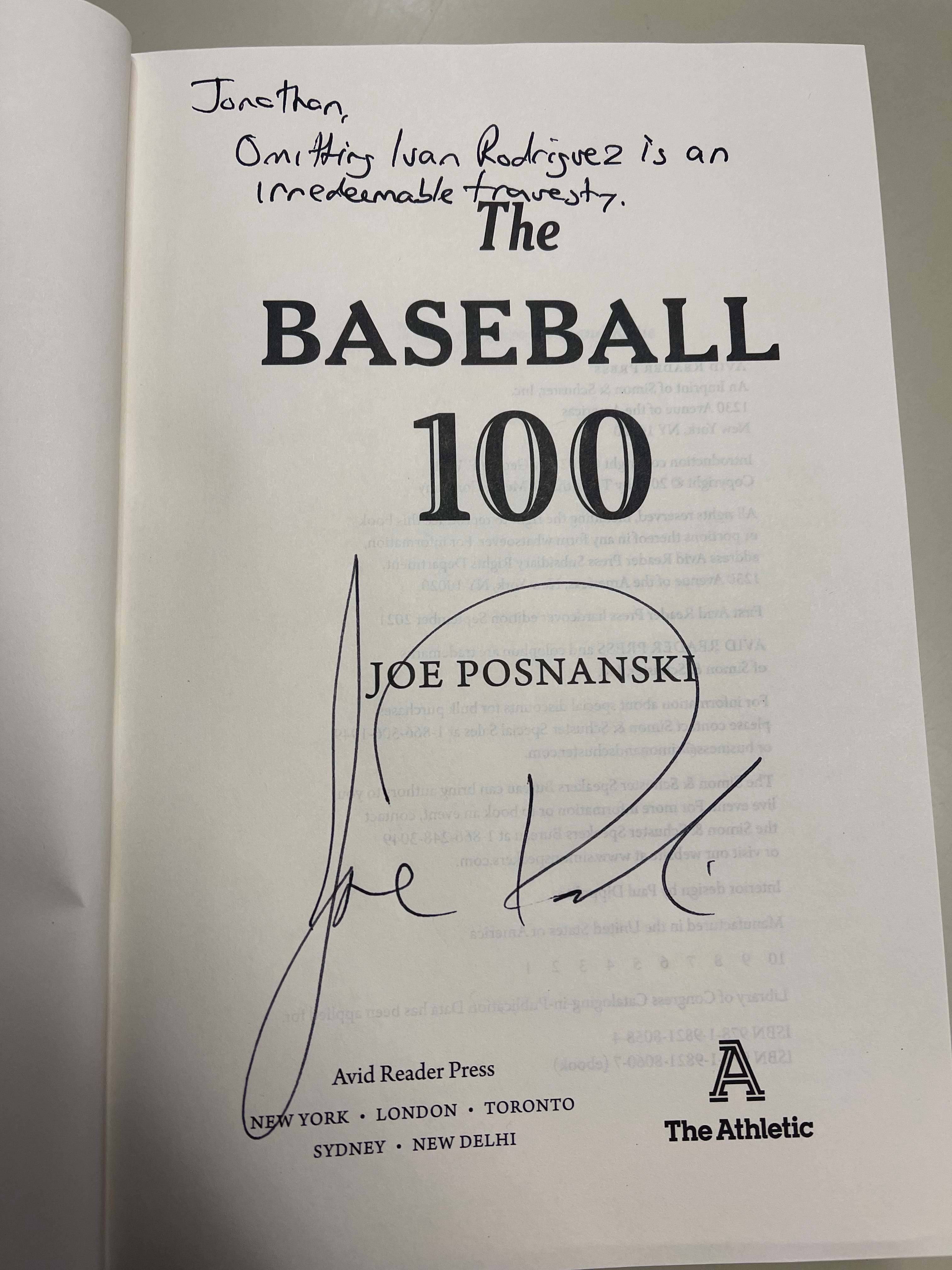 I do not have a twitter account so I will say this here - congratulations Joe on the extraordinary response to The Baseball 100. This is remarkable.
