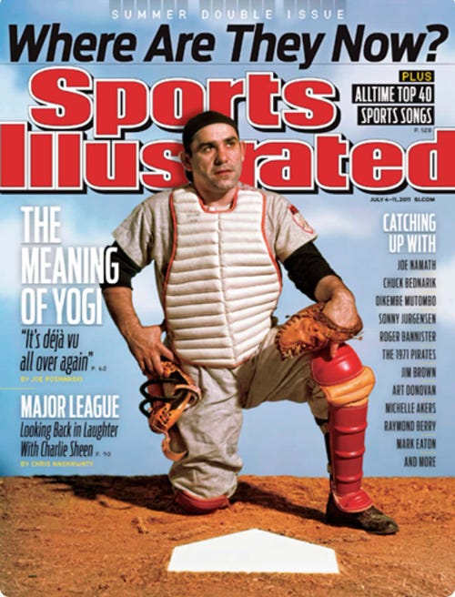 Shortly after this Yogi Berra magazine came out, I was in New York, and I walked through Times Square on my way to the Time-Life Building and the Sports Illustrated offices. On the way, I saw somebody pick up this magazine at an outdoor newsstand. I heard the guy ask the vendor, “Hey, is this any good?” And the vendor guy said, “It’s Sports Illustrated. OF COURSE it’s good.”