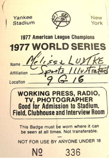 And it did happen during the World Series. Ludtke just wanted to do her job, and doing her job then—and now, but even more so then—required going into the clubhouse after games to interview everybody. Melissa wasn’t looking to break any barriers. She wasn’t trying to change the game. She just wanted to get an interview with Reggie Jackson or Steve Garvey or whoever else.