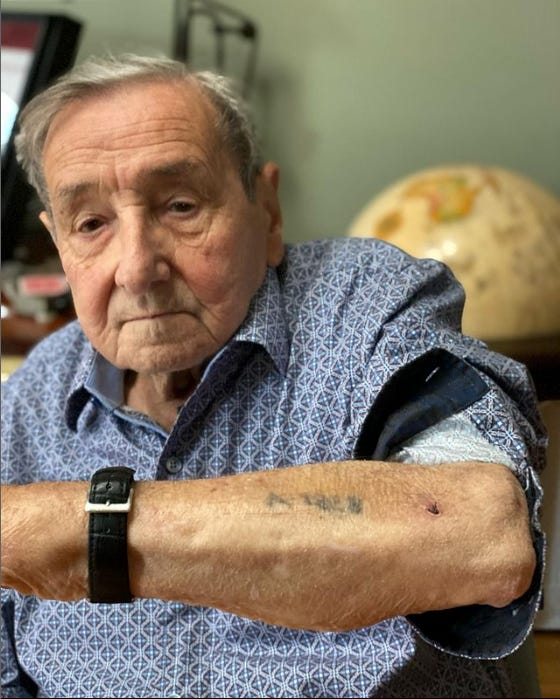 I thought about my grandfather when we met Werner. He was a small man … but utterly fierce. He never wanted anything about the Holocaust to be unstated or concealed. After Werner retired, he began to work with troubled teenagers who had drawn swastikas on walls or committed various antisemitic crimes or promoted the lies about the Holocaust never happening. He told us about some of those conversations. He showed those kids the number the Nazis had tattooed on his arm. He described to them the unbearable smell of the cattle cars that took him and others to Auschwitz. He spoke with them about the family members he lost.